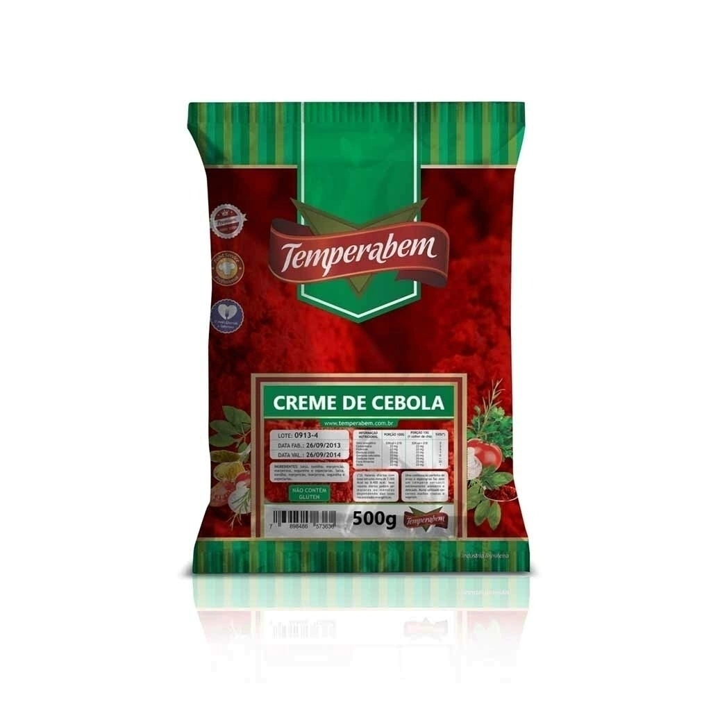 Ingredientes: Creme de milho ( Bacillus Thuringiensis, Streptomyces viridochromogenes, Agrobacterium thumefaciens, Sphingobium herbicidorovan, Zea mays), sal refinado, amido de milho(Bacillus thuringiensis, Streptomyces viridochromogenes, Agrobacterium thumefaciens, Zea mays), açúcar, cebola, salsa, glicose, pimenta branca, óleo de soja( Agrobacterium thumefaciens, Bacillus Thuringiensis realçador de sabor glutamato monossódico INS 621, corante caramelo INS 150d e aroma sintético idêntico ao natural de carne.